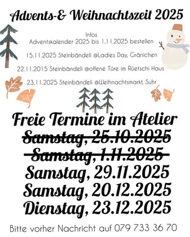 Bei Fragen einfach eine Nachricht auf 079 733 36 70 oder steinbaendeli@gmail.com